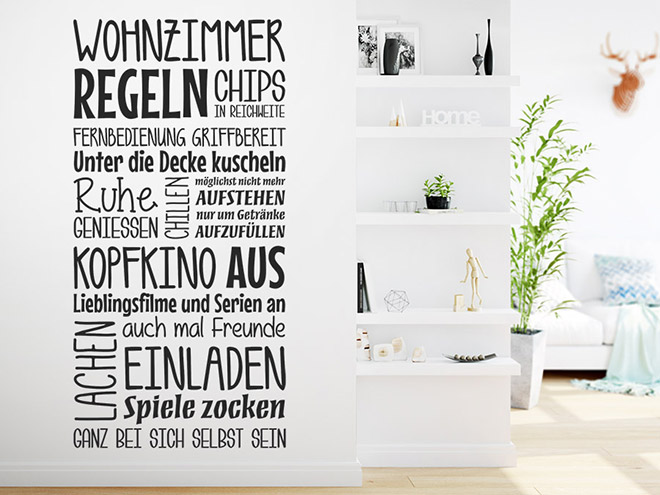 Das wohnzimmer gilt als herzstück einer wohnung, das sie mit einem wandtattoo stilvoll verschönern können.